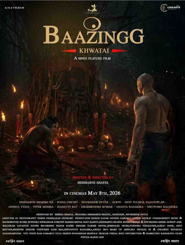 গুৱাহাটী, ১১ এপ্ৰিল: অসমৰ লোকবিশ্বাস, আধ্যাত্মিকতা আৰু ভৌতিক (horror) উপাদানৰ সংমিশ্ৰণেৰে নিৰ্মিত “বাজিং খোৱটাই (Baazingg Khwatai)” এখন ৰহস্যময় আৰু চিন্তাশীল ছবি হিচাপে দৰ্শকৰ আগত আহিব। ছবিখনত দেখুওৱা হৈছে এজন পুৰোহিতৰ জীৱনৰ এক অদ্ভুত ঘটনাৰ পৰৱৰ্তী পৰিস্থিতি, যাৰ সৈতে জড়িত হৈ উঠে এক গুপ্ত সংগঠন (cult) আৰু তাৰ অন্ধকাৰ প্ৰভাৱ।